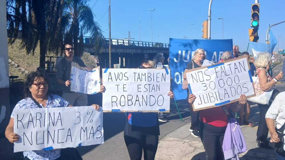 Este miércoles por la tarde, el Sindicato de Trabajadores Pasivos, junto a la agrupación Abuelos en Lucha, llevó adelante una manifestación bajo la modalidad de “ruidazo” en la intersección de la Panamericana y la Ruta 202, del lado de la estación de servicio Puma, en la localidad de Don Torcuato, partido de Tigre.